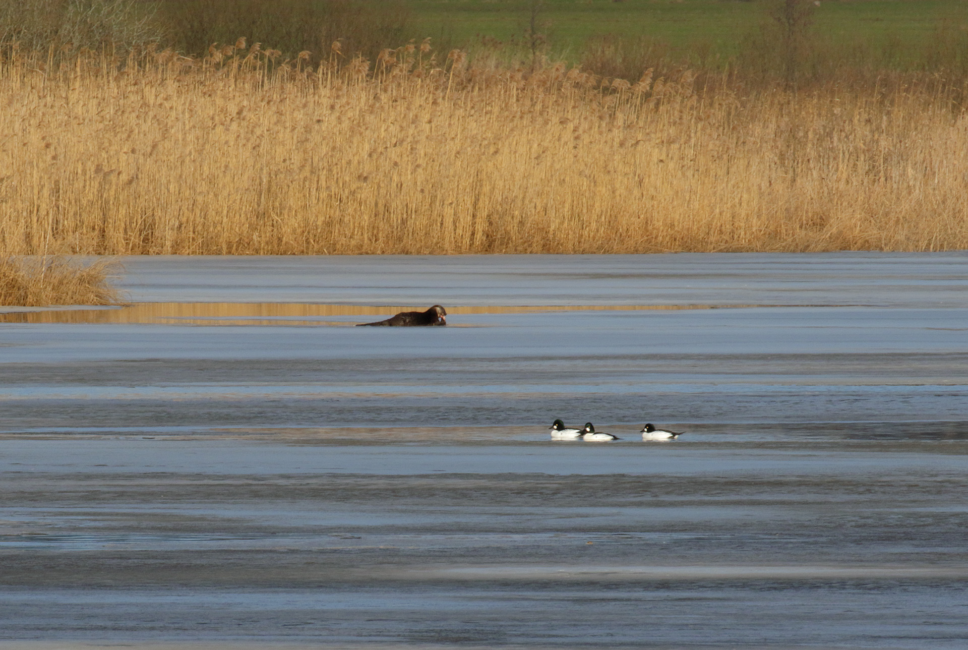 Today is the last day of February and I sum up my five encounters with otters during this month in Uppland, Sweden. If there is ice on rivers and lakes during this month it is the best time to spot otters. They often come up on the ice to eat their prey, or they have to use the ice for transport when the distance is to long for them between water holes. Here are pictures from four of the exiting moments.